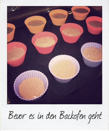 Teigmasse in die Muffinförmchen (Silikonförmchen oder mit Papier ausgekleidetes Muffinblech) füllen und ca. 20 Minuten auf mittlerer Schiene fertig backen