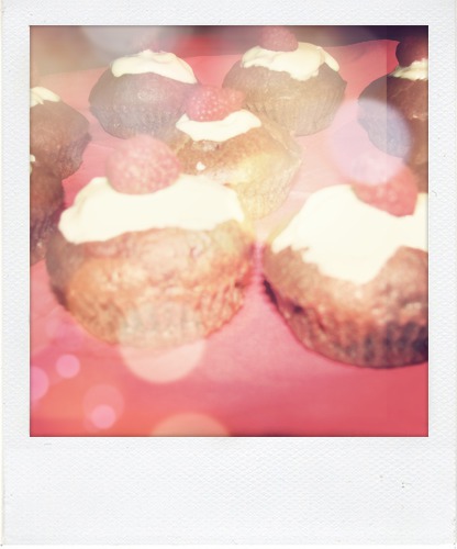 Während die Muffins abkühlen, habt Ihr Zeit um die weiße Schokolade im Wasserbad zu schmelzen . Dann tragt ihr die Schokolade mit einem Backpinsel auf und verziert die Muffins jeweils mit 1 Himbeere.