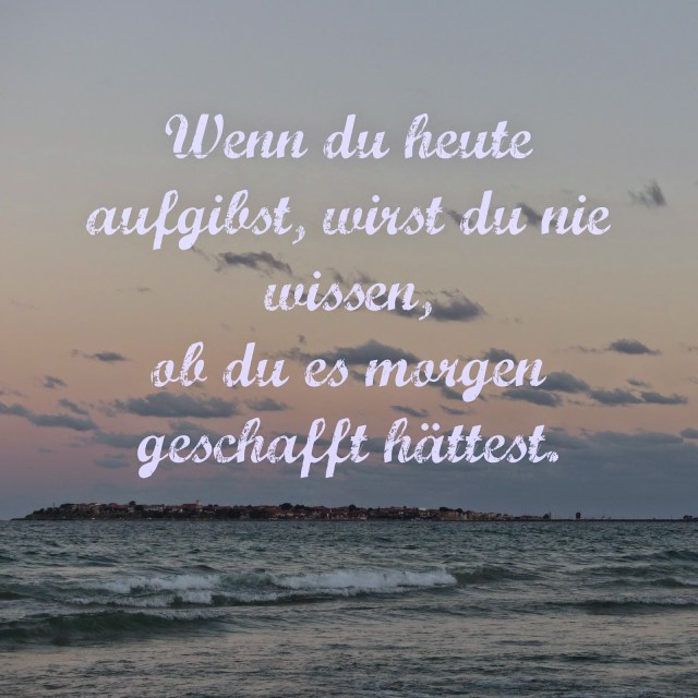 auch wenn man manchmal in Situationen ist, in denen alles hoffnungslos scheint, kämpft weiter, es lohnt sich. Gebt nicht vorschnell auf und resigniert, sondern verwendet Eure Kraft um das scheinbar Unmögliche zu erreichen. Manchmal sieht die Welt am nächsten Tag schon besser auf.