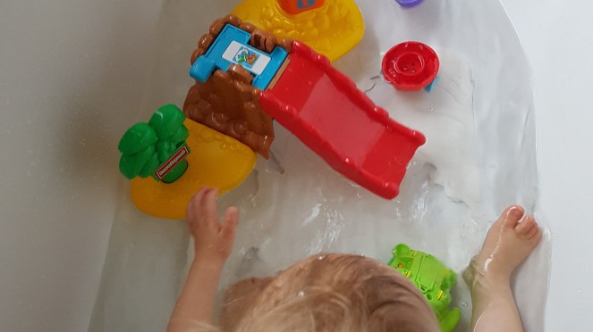 Zum Geburtstag gab es unter anderem Tip Tap Tiere und Tut Tut Autos. Auf den Tipp anderer Mütter hin hatte ich schon vor einigen Wochen eine singende Katze ergattert und mir daraufhin weitere Tiere/Autos für Bella gewünscht. Und was soll ich sagen? Seit Ihrem Geburtstag vergeht kein Tag an dem Bella nicht bereits morgens mit einem singenden Auto oder einem singenden Tier unterwegs ist. Längst habe ich mich von der Vorstellung hochwertigen Holzspielzeuges verabschiedet. Kinder lieben es laut, bunt und wenn es dann noch aus PVC (und damit abwaschbar ist) : perfekt. Bella liebt dieses Spielzeug und das ist die Hauptsache. Natürlich haben wir auch Holzspielzeug wie einen Motorikwürfel, eine Motorikschildkröte und Bauklötze. Ich finde, hier macht es eine gute Mischung , die auf die Interessen des Kindes abgestimmt ist.