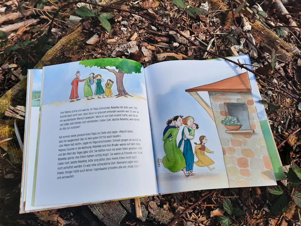 Im Mittelpunkt des Buches steht die kleine Rebekka, deren Eltern zu Jesus Anhängern gehören. Sie lernt Jesus kennen, als er bei Ihrer Familie zum Essen eingeladen wird. Sie ist beim letzen Abendmahl dabei und sieht ihn am Kreuze hängen. Ihre Mutter erzählt Rebekka von der Auferstehung und so erfahren die jungen Leser ebenfalls durch die Augen eines Kindes wie es zu Zeiten Jesus Leben gewesen ist. Diese Idee fand ich ganz gelungen .
