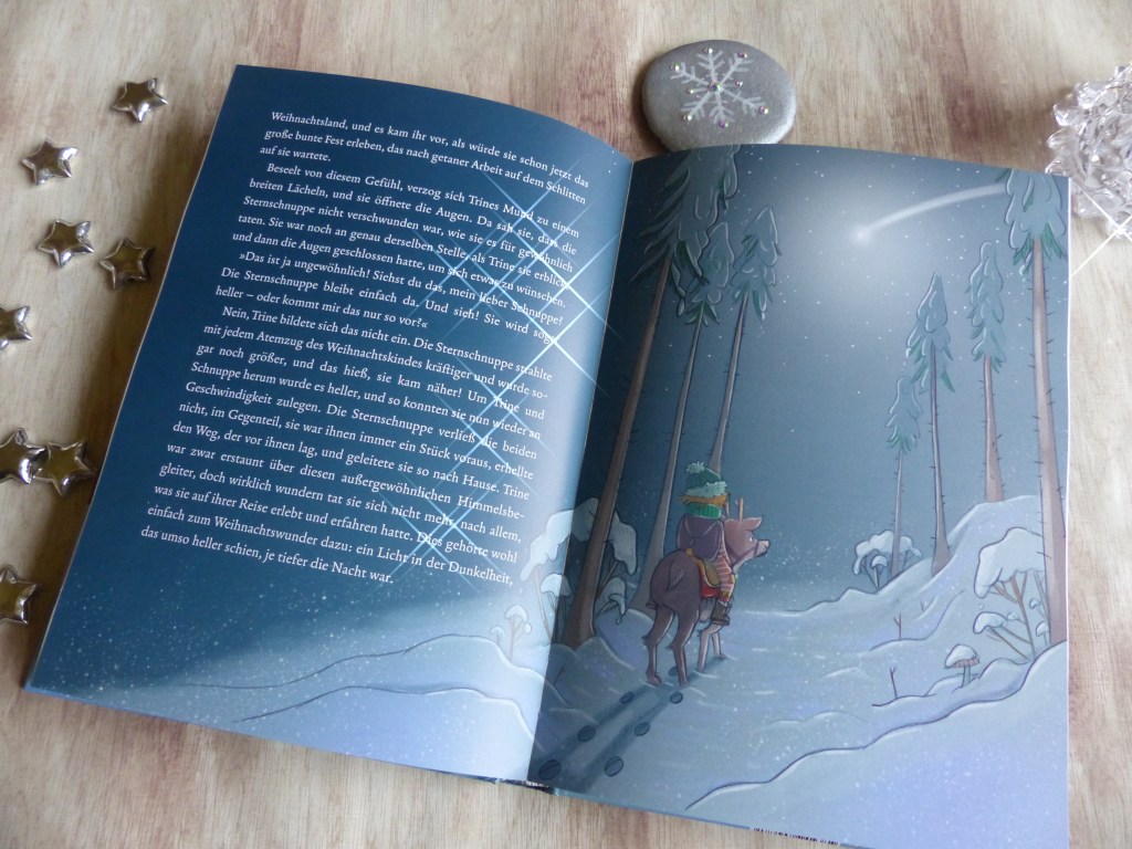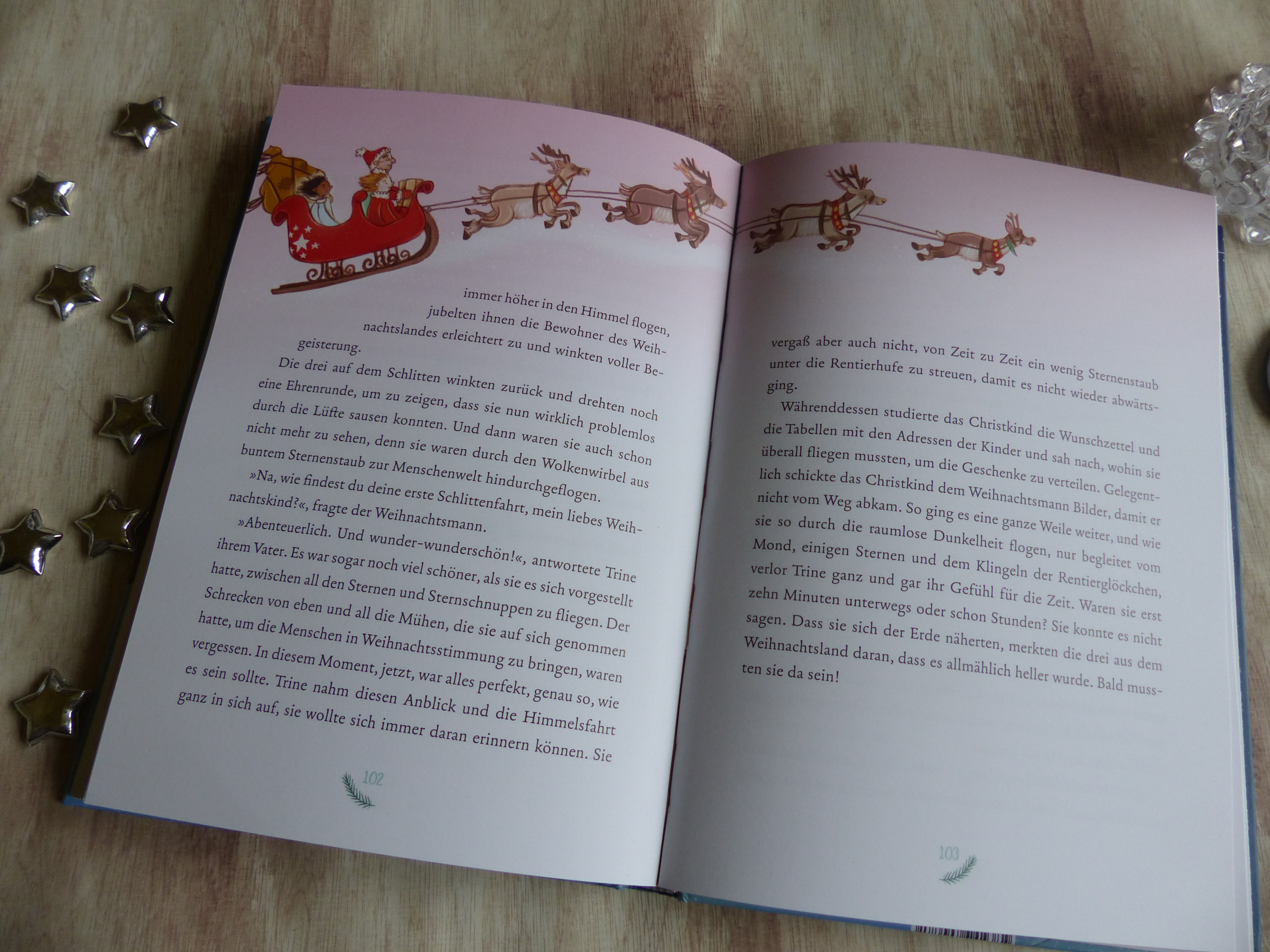 Die Bedeutung von Weihnachten wird immer wieder wie Zufällig in Trines Abenteuer eingewoben. So heisst es zum Beispiel an einer Stelle im Buch “ Immer wenn Menschen Ihr Herz öffnen und füreinander da sind -, das ist der wahre Geist der Weihnacht.“