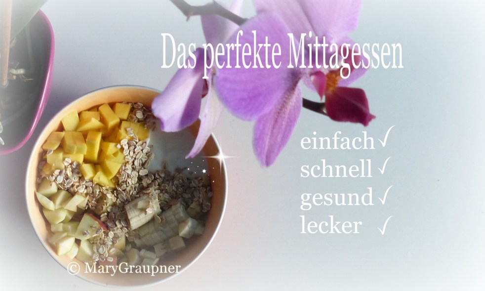 Als Mama muss es schnell gehen. Das Mittagessen. Dennoch wollte ich auf ein leckeres, gesundes Menü nicht verzichten:ein ausgewogener Obstsalat bot sich daher perfekt an.