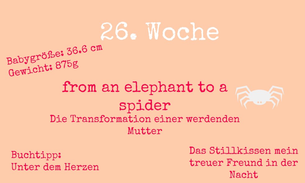 Die 26. Schwangerschaftswoche ist relativ unspektakulär bei mir gewesen… From an elephant to a spider… Das Wasser in den Füßen ist Gott sei Dank nicht schlimmer geworden, dafür sieht mein rechter Oberschenkel wie von lauter kleinen aber auch großen Spinnenfäden durchzogen aus. Mit Besenreisern könnte ich ja (fast) noch leben . Obwohl wenn ich ehrlich…… Weiterlesen 26. Schwangerschaftswoche