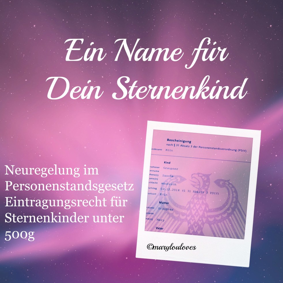 Seit dem 15. Mai 2013 ist es möglich sogenannte „Sternenkinder “ dokumentieren zu lassen. Somit wird die Existenz unserer Kleinsten nun auch anerkannt.